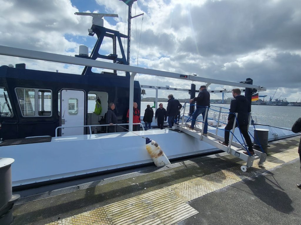In Präsentationen wurden den Teilnehmer*innen die Projekte CAPTN Energy und CAPTN Förde Areal vorgestellt. Daran schloss sich eine Diskussion über die Anforderungen an ein Mobilitätskonzept an, wie sich künftige Mobilitätsketten integrieren lassen sowie über die autonome Fähre als Zukunftsvision für den öffentlichen Personennahverkehr. Nach den Vorträgen führte Geschäftsführerin Kathrin Birr über das Werftgelände und berichtete von den Herausforderungen der Transformation einer mittelständischen Werft.